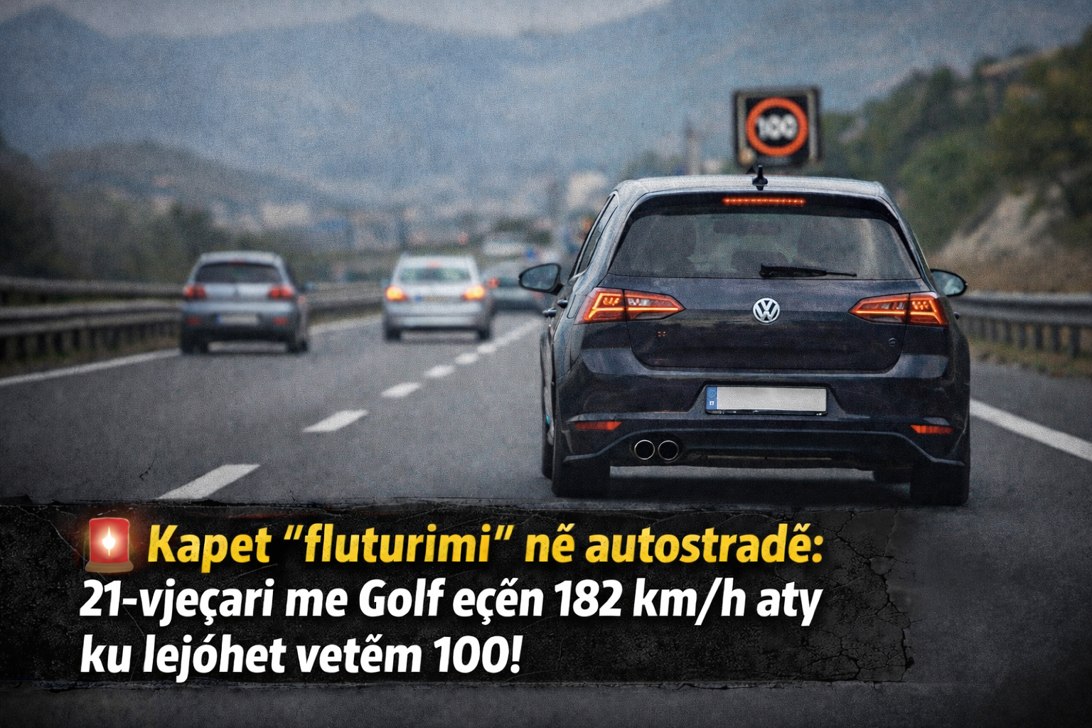 Një shofer i ri, 21 vjeç me inicialet E.H., është ndaluar nga policia rrugore pasi është kapur duke vozitur me një shpejtësi tepër të rrezikshme.